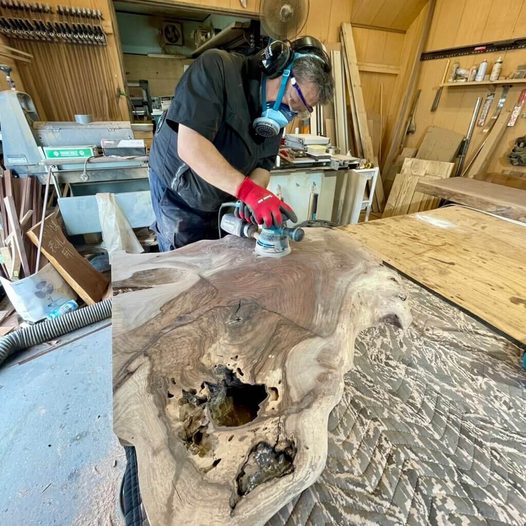 完成した一枚板テーブルはまさに自分だけの一枚に!!
